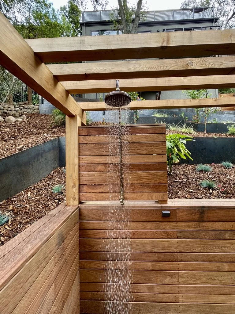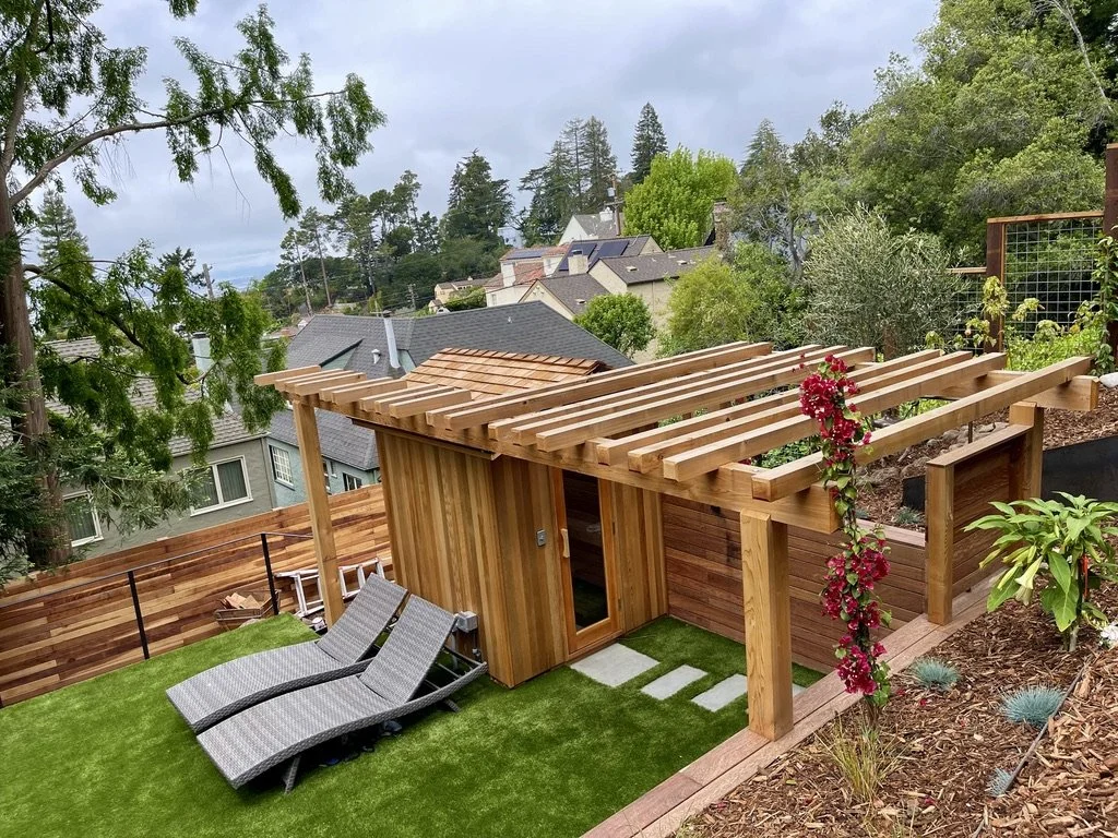 We terraced the hillside with Corten steel, which created multiple levels of usable landscape. Granite stairs were added to provide easy access between the levels, while elegant IPE wood was used to give the design a natural, elegant feel. A cedar sauna and a pergola were built to create a relaxing retreat, offering the family a private, tranquil escape within their own backyard.